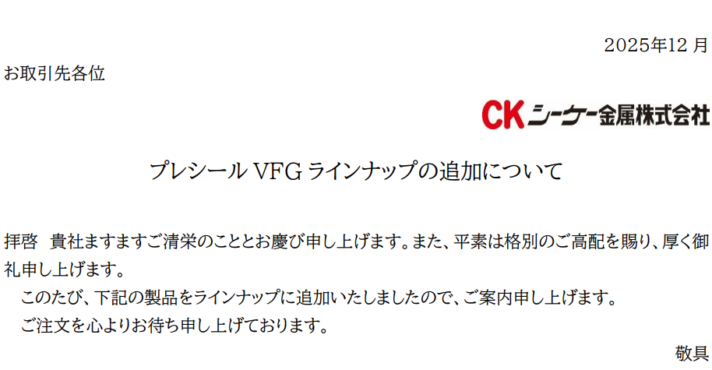 CKトップジョイント、CKパイプニップル 定価改定のお願い